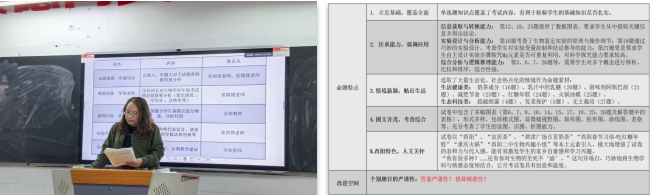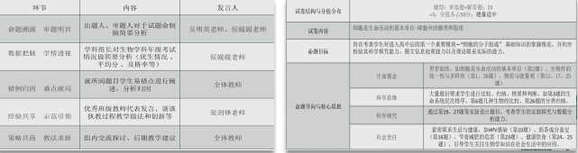 侯媛媛、吴明英老师作为命题与审题人,就试题设计与考查目标作专项说明。本次试题严格遵循课程标准,聚焦“结构与功能观”“物质与能量观”等核心生命观念,注重科学探究与逻辑思维能力的考查。题目设置贴近真实情境,引导学生运用生物学知识解决实际问题,体现从“知识立意”向“能力立意、素养导向”的转变,充分发挥了考试对教与学的引导功能。