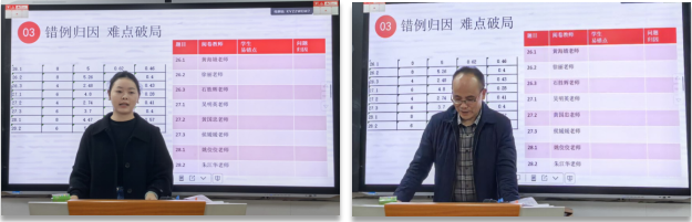 全组教师围绕共性错题与典型失分点展开深入研讨。问题主要集中在核心概念辨析、实验设计分析、信息迁移应用等方面,反映出部分学生对概念理解不够透彻、科学思维系统性不足等问题。通过归因分析,大家一致认为需进一步强化知识形成过程的教学,帮助学生构建完整的知识网络,提升思维严谨性与整合能力。