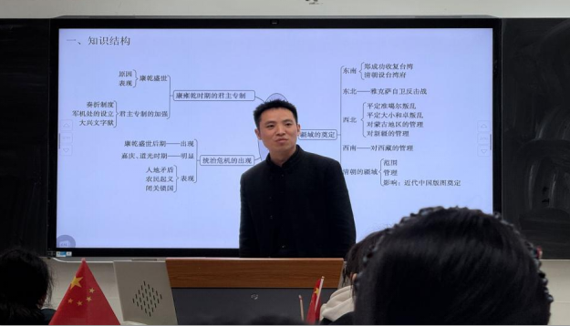 为精准落实高三一轮复习核心要求,提升历史学科复习课堂的深度与实效,11月7日上午,高2026届历史组鲁振川老师以《清朝前中期的政治制度与国家治理(疆域奠定)》为主题,开展了一堂高质量的一轮复习公开课,其对史料的精妙解读与教学方法的灵活运用,充分彰显了扎实的专业素养。