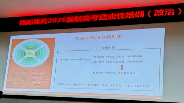 为全面提升高三政治学科教师的高考命题研究能力,准确把握命题趋势与方向,近日,高2026届政治组全体教师赴酉阳一中参加了为期两天的高考适应性命题能力培训。本次培训内容系统、环节紧凑,取得了显著成效,为下一阶段精准备考奠定了坚实基础。