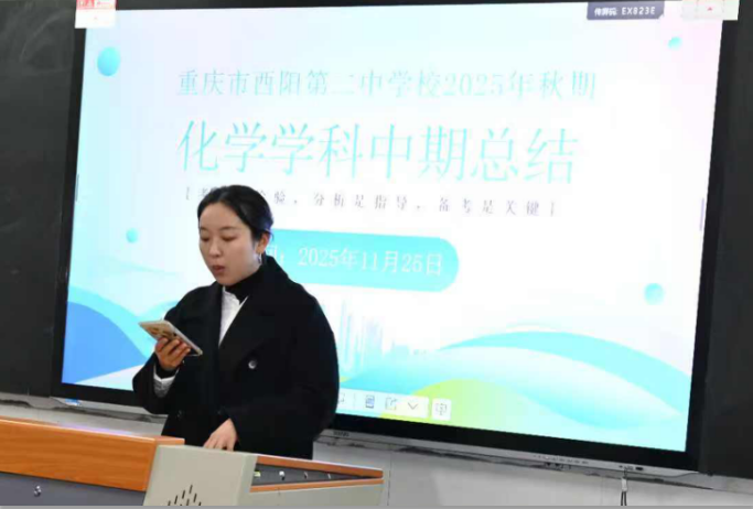 本次系列教研活动以“精准研判、经验互鉴、对标提质”为核心,分三大环节有序开展:一是高一、高二、高三化学学科组长(陶莲、田丽芳、冉景丹)分别牵头的年级考试成绩分析及后半期教学计划部署;二是青年教师代表王璐娟的教学成长经验分享;三是邢丽丽老师主导的高考题研读与 2025 版化学课程标准解析指导。全体化学教师全程参与、积极研讨,形成了“问题导向—经验共享—方向引领”的完整教研闭环。