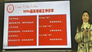 学科组长李明兰老师系统分享了年级备课组的实践与思考,聚焦六大维度: 团队协同:强调“分工合作、智慧共享”的教研模式,构建了高效务实的集体备课流程。 资源建设:持续进行教学资料的“迭代与升华”,确保教学内容精炼、高效、与时俱进。 学生活动:通过举办“英语书写竞赛”、“词汇挑战赛”等特色活动,激发兴趣,以赛促学。 课堂示范:推行“新秀展风采,骨干做示范”的公开课机制,营造互学共进的浓厚氛围。 团队文化:生动诠释了“我们这样‘卷’在一起”的办公室文化——是钻研,是互助,更是温暖的同行。 培优规划:已着手系统规划,旨在为学有余力者搭建更高平台。 李明兰老师以“前路漫漫,但我们信心满怀。只要我们一群人、一条心、一起拼,一定能持续进步,迎来属于我们的满园芬芳”作结,展现了团队的坚定信念。