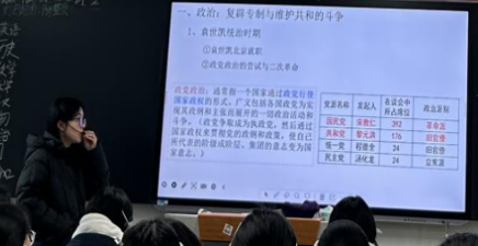 复习公开课是聚焦备考重点、优化复习策略的关键平台。2025年12月5日,唐维维老师围绕“北洋军阀统治时期的政治、经济与文化”开展高三历史一轮复习公开课,高2026届全体历史教师参与听课。本课以专题为线索,系统梳理阶段特征,注重知识关联与能力渗透,为提升一轮复习实效提供了有益借鉴。
