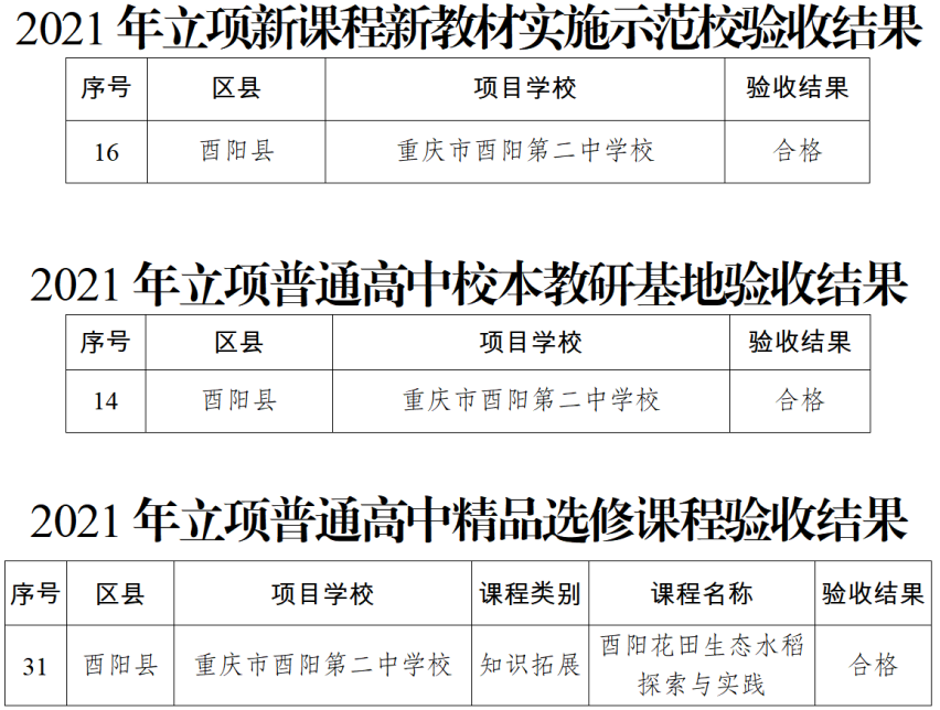 近日,重庆市2021年立项的普通高中发展促进计划项目验收结果正式公布。我校作为酉阳县唯一一所同时承担“新课程新教材实施示范校”“普通高中校本教研基地”以及市级精品选修课“酉阳花田生态水稻探索与实践”三个项目的学校,全部顺利通过验收,取得的成绩令人振奋!