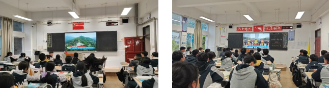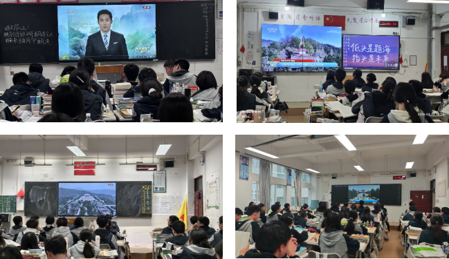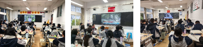 在观看过程中,各班班主任认真组织,学生专注投入。屏幕上,甲辰年清明公祭轩辕黄帝的片段,展现了海内外中华儿女同根同脉、共祭人文始祖的庄严场景,让学生深切体会到民族文化的凝聚力与延续性。此外,贵州遵义红军山上讲述长征壮歌、江西井冈山星火燎原的峥嵘岁月、石家庄华北军区烈士陵园和天津平津战役纪念馆内社会各界肃立默哀的场景,以及辽宁沈阳抗美援朝烈士陵园中巍峨的丰碑,同样深深触动了每一位学生。这些内容将清明节“追思先人、致敬英烈”的传统精神与当代爱国主义教育有机融合,使学生更加理解清明文化中蕴含的感恩、传承与担当。