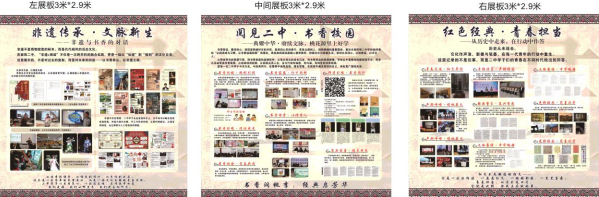 4月20日至25日,作为读书月活动的“重头戏”,学校在桃花源广场精心布置了读书节主题展厅,成为师生驻足打卡、参观学习的“热门地标”。展区采用左、中、右三块大型展板(各3米×2.9米)与实物展台相结合的方式,分为“红色经典·青春担当”“阅见二中·书香校园”“非遗传承·文脉新生”三大板块,由团委李艳老师、黄闽川老师和刘梦婷老师共同设计与布展。